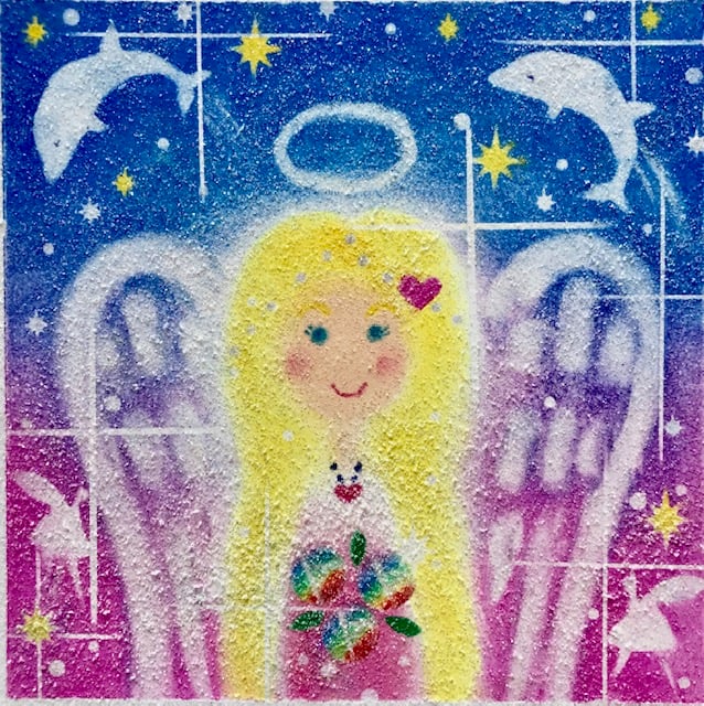 お名前から読み取れたサポートカラーを用いて守護天使を描きます。キラキラしたパステルアート☆お部屋に飾ることで波動もUP‼いつも守護天使&カラーのサポートを受けられます。